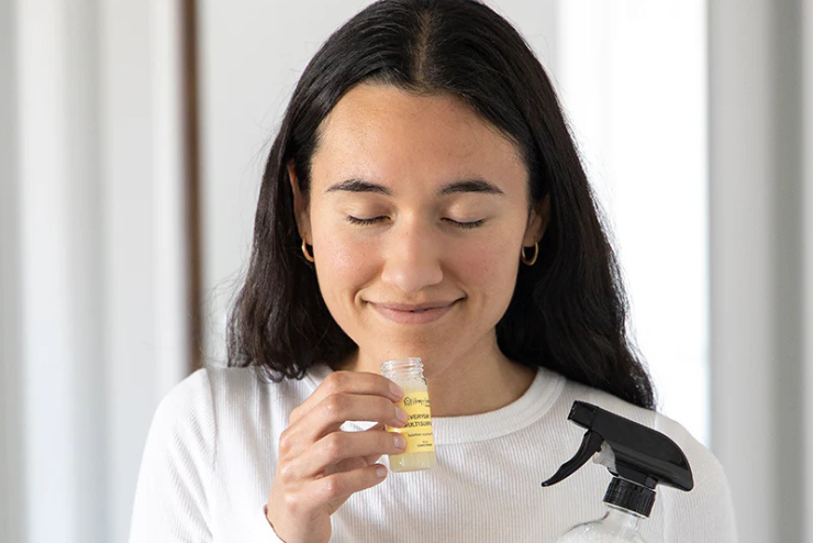 • Wood + Floor Cleaner: This cleaner is specially made to clean and protect wood surfaces. Scents of lavender and palmarosa flowers provide a calming atmosphere while eliminating odors and bacteria.